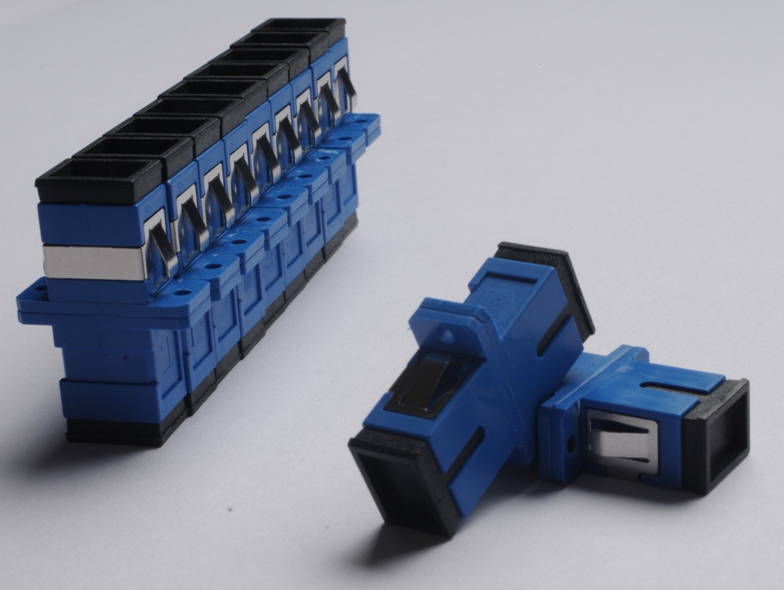 Fiberdost offers a range of high quality SC adaters which have high precision alignment sleeves for reliability and improved reconnectability. For singlemode applications a ceramic sleeve is supplied to ensure a high precision alignment. For multimode applications a phosphor bronze or ceramic sleeve is suplied. The housing is availible in different colours with options for flange or flangeless body, metal clips of inbuilt clips.